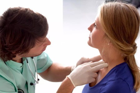 多數(shù)部位的淺表淋巴結(jié)可以通過觸摸進(jìn)行自檢,如:頸部、腋窩、腹股溝的淋巴結(jié)。